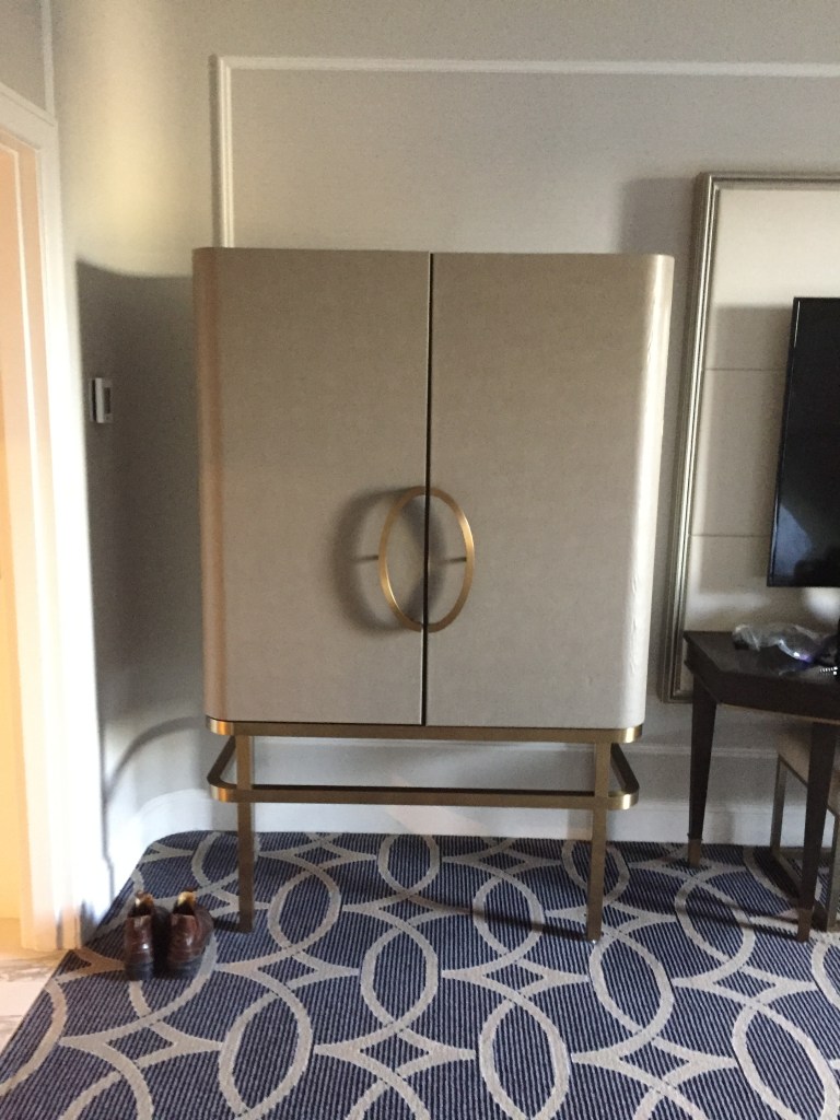 We were “upgraded” for our $280 room to the 14th floor, which we assume without Covid was and will again be the special-guest floor including the Governor-General Suite and the Royal Suite. The room was big with its small Vancouver Hotel window, but wierdly gauche in its interior design and furnishings. It’s the kind of thing I suppose would make a designer cringe because of the obvious cost of the materials and fixtures executed with zero aesthetic understanding of what is comforting and pleasant.