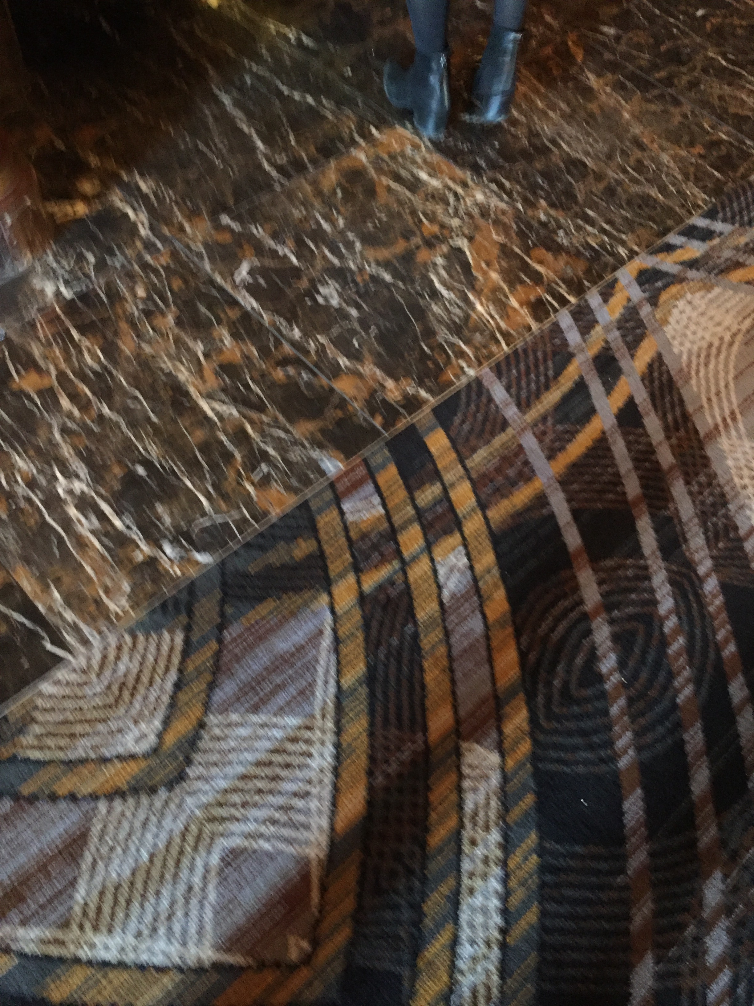 We stopped by mistake on one of the other floors on the way out, and the carpet pattern was frightening in its three-dimensional brightly-coloured geometric confusion.