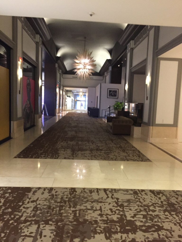 The other way was down toward the end of the hall, where there was an unmarked door into a service area with some industrial elevators and an ice machine. I got the ice and explained embarrassed to the lady who brought a plastic bag full of ice chips that we didn’t need them.