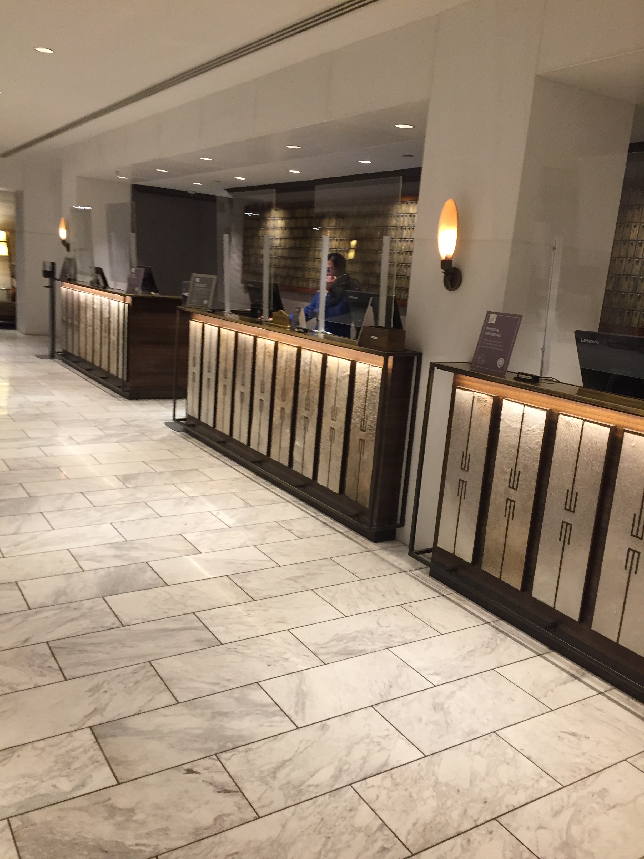 The lobby is cold, angular, white, chilly: anything but welcoming. Our desk employee is a Chinese man whose demeanour communicates ironic bored meeting-of-standards as if we were in Russia. We finish up there, and head into “Notch8”, the only restaurant, for a drink. There’s an elderly Chinese man behind the bar who has to be coached by another employee to make a boulevardier, and a perfectly nice older middle-age South Asian lady who brings us our drinks with a cup full of dry popcorn, and eventually a bill for $43 for a couple of cocktails. Notch8 has that same expensive bus-station feel to it, intensified when you have to go all the way into the large lobby, along it for about 40 m, and down a full flight of stairs to get to the nearest bathroom on a lower level.
