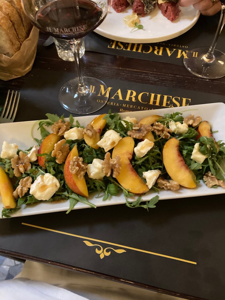 Robin had a delicious salad to start containing fruit, arugula, brie and walnuts. The dressing was vinaigrette with a bit of a sweet side to it. My beef tartare was straight tender meat with mayo/mustard on the side. Tasty and simple. Our pastas were a good carbonara for Robin and a special-looking duck ragu and orange tagliatelle for me. These were both a bit like the restaurant’s atmosphere, more or less business-as-usual. Our wine was, along similar lines, a perfectly nice chianti classico. Prices were at-expectation and certainly nothing close to the nonsense we experienced at Mistral the night before.